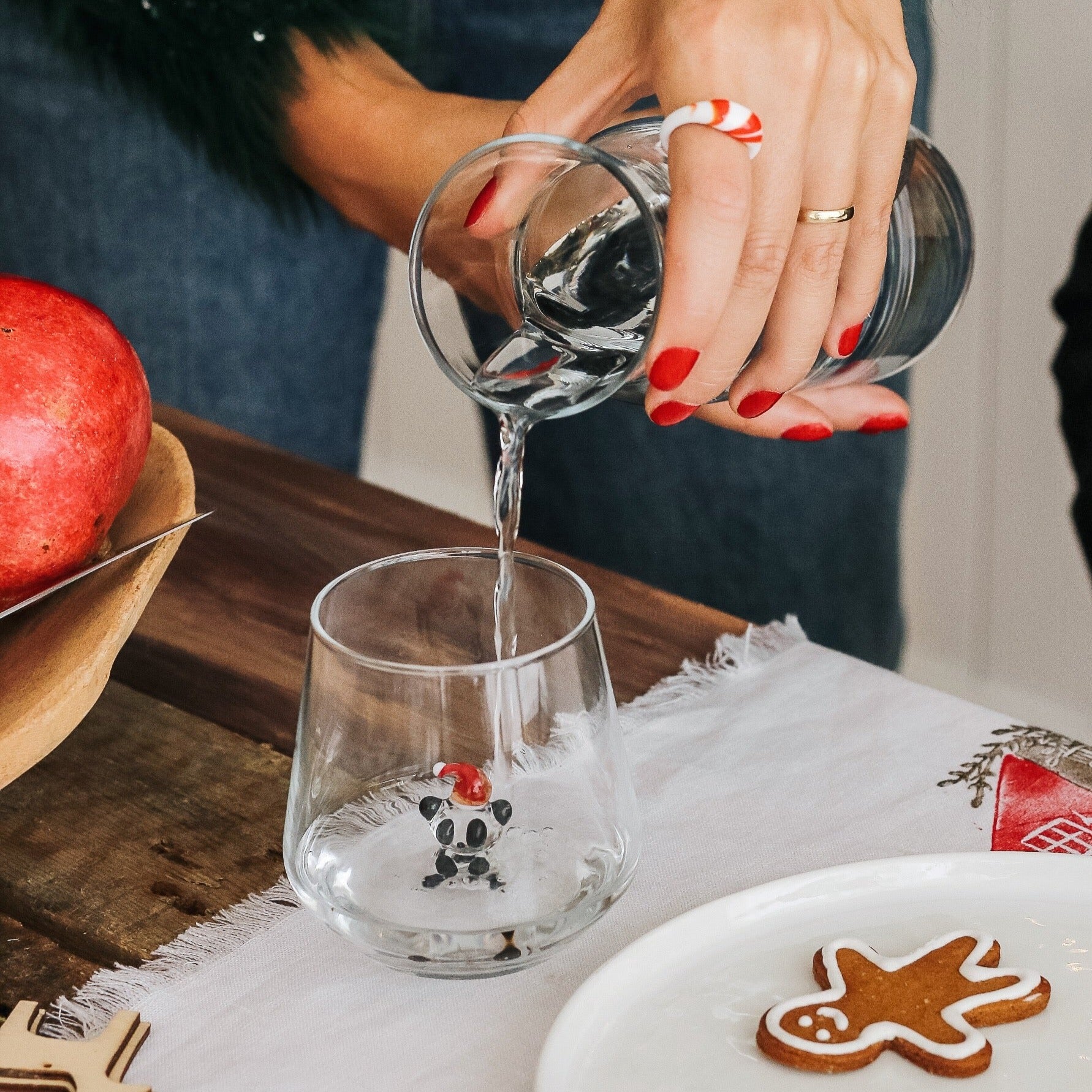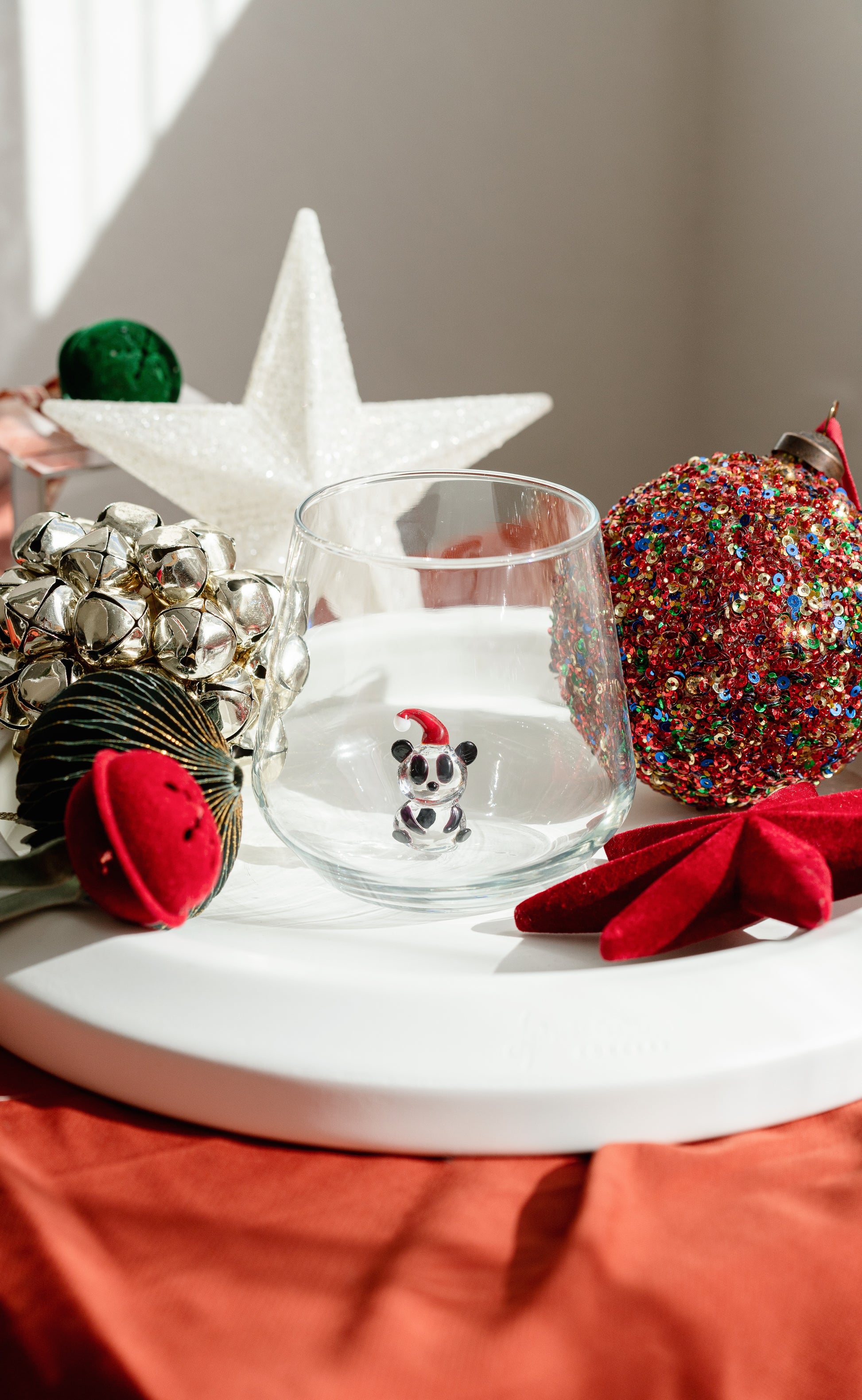 The most wonderful time of the year! This set includes water glasses of 345cc. The figures are made of Murano glass, handmade.
