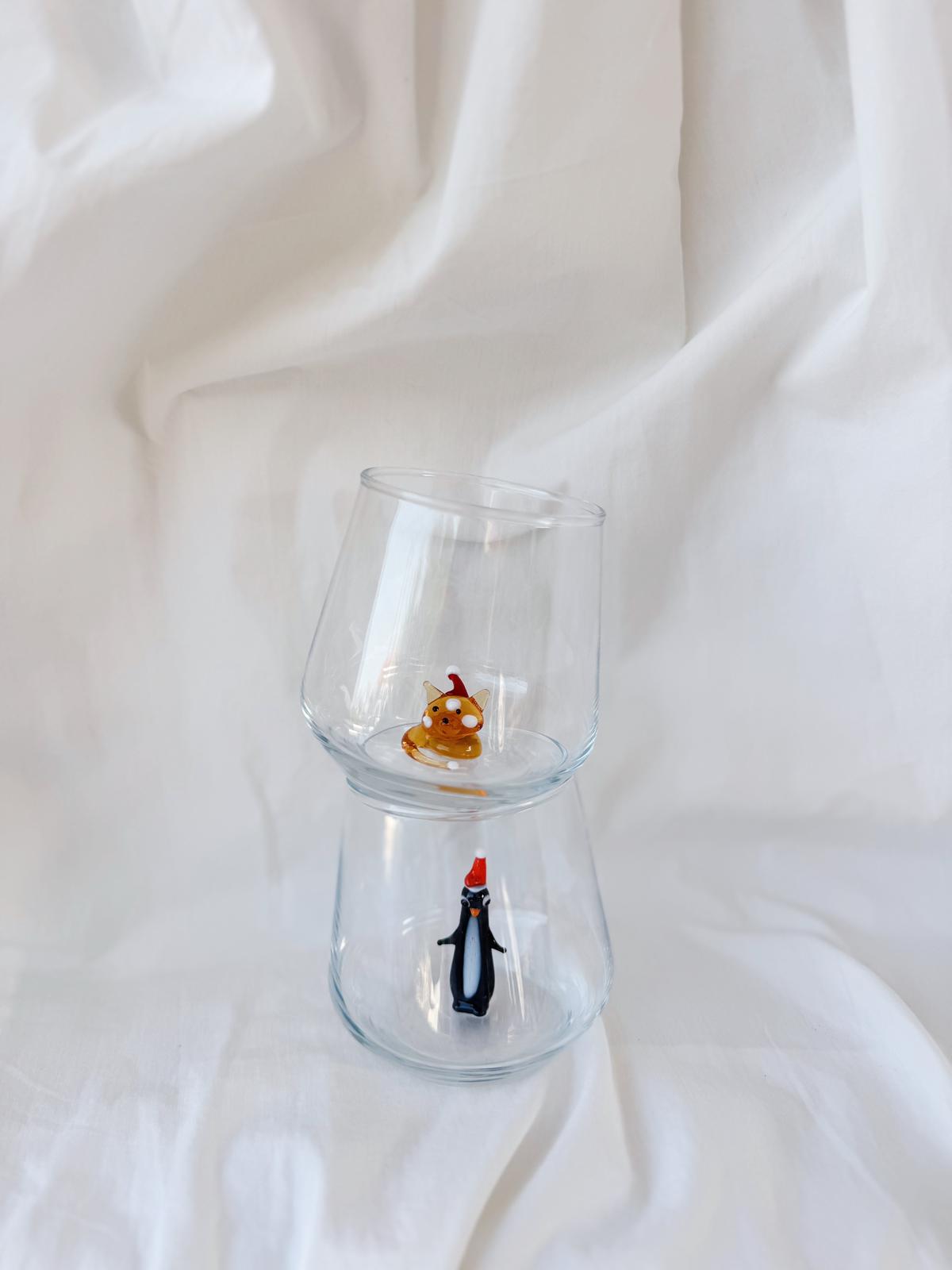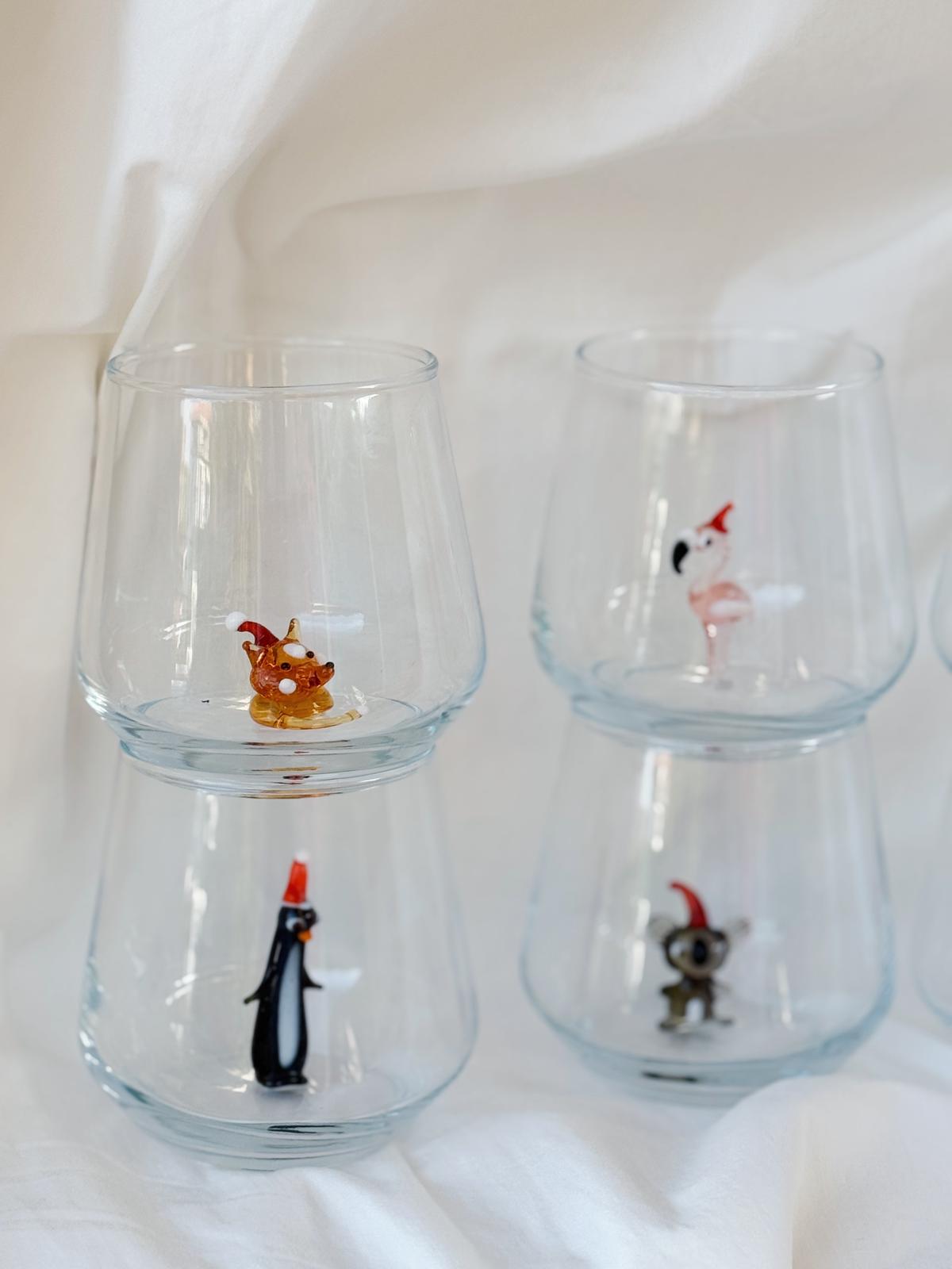 The most wonderful time of the year! This set includes water glasses of 345cc. The figures are made of Murano glass, handmade.